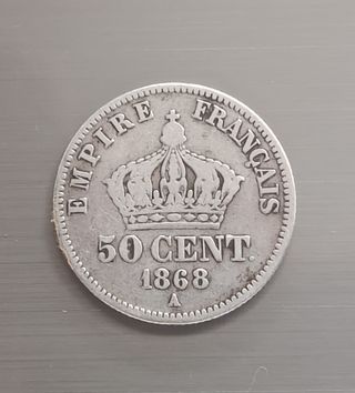 50 Céntimos 1868 Napoleón Imperio Francés - Plata