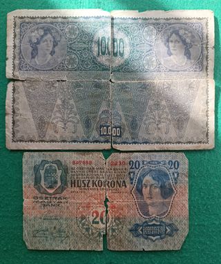 Billetes Austrohúngaros 10.000 y 20 Kronen