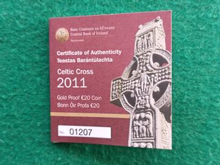 Moneda oro 24k - 20 Euro Irlanda 2011 Cruz Celta