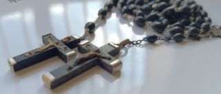 Lote 2 rosarios antiguos con crucifijo funda cuero