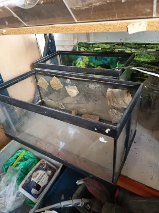 Urna de cristal, ideal para acuarios o terrarios. Se encuentra en buen estado. - Material: Cristal. - Marco superior negro.
