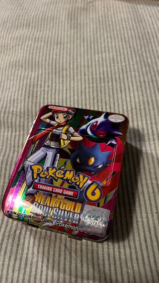 Caja metálica coleccionable del juego de cartas Pokémon HeartGold & SoulSilver. - Diseño con personajes de Pokémon. - Ideal para guardar cartas o como objeto de colección.