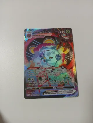 Carta Pokémon VMAX de Orbeetle. - Habilidad: Rayo Espeluznante. - Ataque: Gigaonda. - Regla VMAX: Cuando tu Pokémon VMAX queda Fuera de Combate, tu rival coge 3 cartas de Premio. - Ilustración de Teeziro.