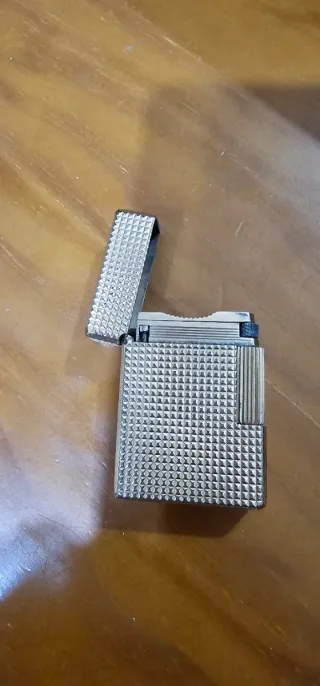 Elegante mechero Dupont en tono dorado. Su diseño presenta un acabado texturizado con pequeños rombos. - Color dorado. - Diseño texturizado.