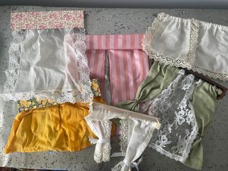 Conjunto de cortinas para interior de habitaciones de casita de muñecas, con un diseño encantador. Incluye 6 piezas de diferentes estilos. Hechas a mano. Años 80. Medidas: ver fotos. Más muebles para casitas de muñecas en mi perfil.