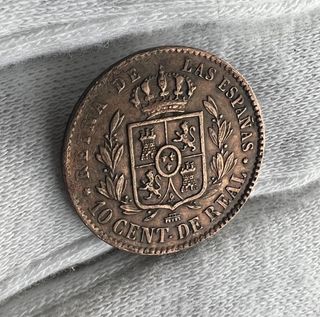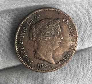 Moneda de 10 céntimos de Isabel II acuñada en Segovia en el año 1860. Envío: Certificado 6€ a cargo del comprador. Pago: Transferencia bancaria, Paypal “Amigo” o Bizum.
