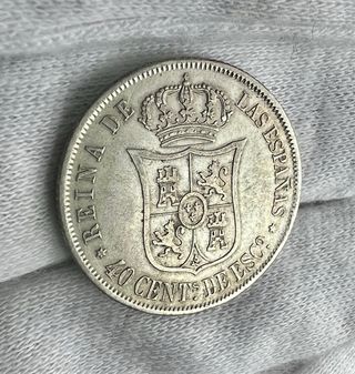 Moneda de 40 céntimos de Isabel II acuñada en Madrid en el año 1866. - Canto con inscripción. - Leyenda: ISABEL 2A POR LA G. DE DIOS Y LA CONST.