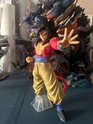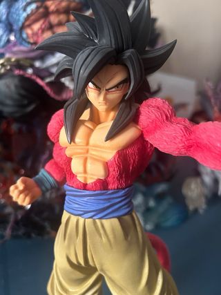 Figura de Goku en su transformación Super Saiyan 4 de Dragon Ball de Banpresto. - Diseño detallado del personaje. - Colores vibrantes en su vestimenta y cabello. - Figura solo expuesta en vitrina - Incluye caja original