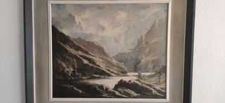 Cuadro original de Domingo HUETOS (1928-2005). Óleo sobre tabla. Pintura visible: 72x60 cm Con marco: 101,5x89,5 cm Paisaje de la Sierra madrileña. Posible data en 1959/1960. Regalo personal del pintor a la familia. (Pintura en perfecto estado, con pequeña muesca en esquina inferior del marco)