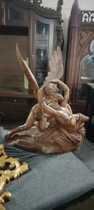 Figura de madera: mujer y ángel