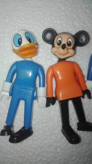 Lote de tres figuras vintage de colección tipo Airgamboys. Articulaciones algo flojas. - Figura de Donald. - Figura de Mickey Mouse. - Figura de un mono con uniforme de la marca Elf.