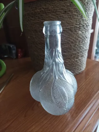 Botella de vidrio con diseño de naranjas, modelo Trinaranjus del año 1933. - Material: Vidrio. - Diseño: Frutas (naranjas). - Año: 1933.