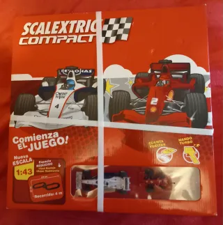Circuito de Scalextric Compact con coches de carreras. - Escala 1:43. - Recorrido de 4 metros. - Incluye mando turbo y cuentavueltas.