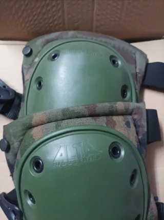 Protecciones militares para rodillas y codos. - Diseño de camuflaje. - Marca Alta Industries.