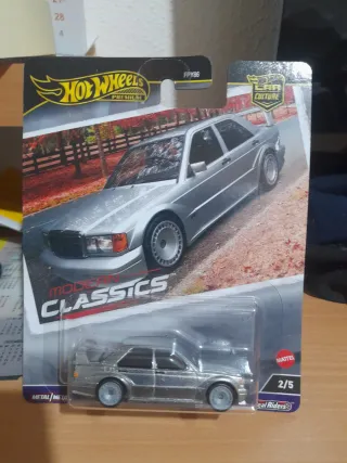 Coche de colección Hot Wheels Premium, modelo Mercedes-Benz 190E Evolution II. - Serie Car Culture. - Línea Modern Classics. - Escala 1/64. - Base y carrocería de metal. - Ruedas Real Riders.