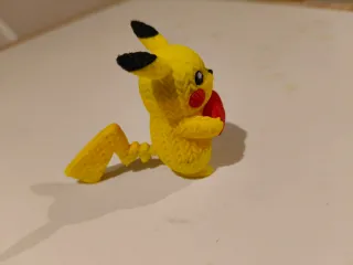 Figura de Pikachu con un diseño tejido y un corazón rojo. - Estilo tejido. - Sostiene un corazón rojo.