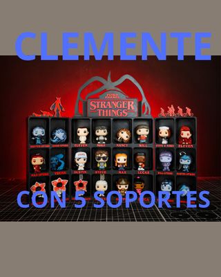 Expositor para figuras Funko Pop de Stranger Things. Ideal para coleccionistas. - Diseño temático de Stranger Things. - Capacidad para múltiples figuras. - Muñecos NO INCLUIDOS. - Incluyo 5 soportes.
