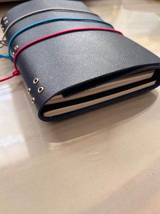 Cuaderno viajero negro artesano , para elegir el color de cuerda de preferencia. Capacidad para 4 libretas Posibilidad de personalizar con iniciales. Se vende sin libretas