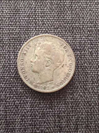 Moneda de 1 peseta de 1902, con el busto de Alfonso XII.