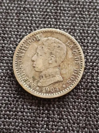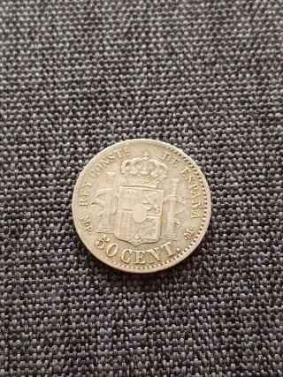 Moneda de 50 céntimos de Alfonso XIII acuñada en 1904.