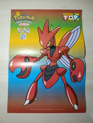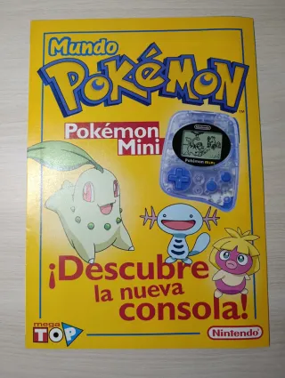 Revista Mundo Pokémon sobre la consola Pokémon Mini. - Portada con personajes de Pokémon. - Incluye información sobre la consola. - Póster Scizor.
