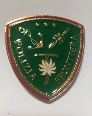 Placa metálica de la Polizia di Frontiera italiana. Polizia di Stato.