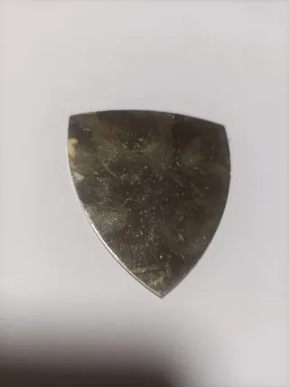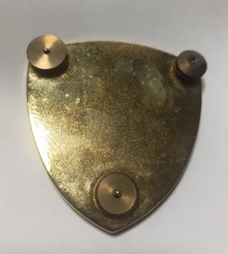 Placa metálica con diseño de corona, espada y engranaje. 6 x 4,5 cm - Diseño circular. - Detalles en color rojo y plateado.