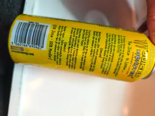 Lata de bebida energética Monster Juiced Ripper. - Color amarillo vibrante. - Diseño con el logo característico de Monster.