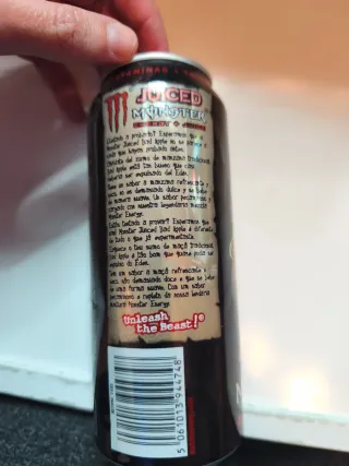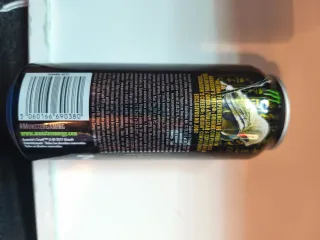 Lata de bebida energética Monster. - Diseño negro con logo verde. - Sabor Energy.
