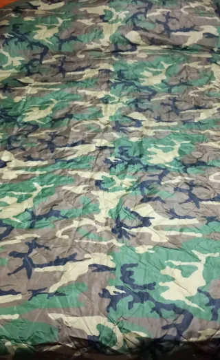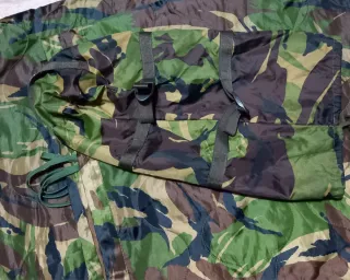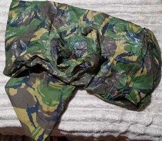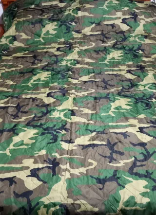 Manta tipo poncho liner con estampado de camuflaje en camo DPM del ejército Holandés. Está en buen estado general, adjunto fotos de pequeños daños que presenta .Se incluye funda de compresión en muy buen estado. - Diseño de camuflaje militar. - Tejido acolchado.