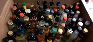 Conjunto de 60 botellitas de bebidas alcohólicas en miniatura. - Variedad de marcas y tipos de bebidas. - Ideal para coleccionistas o para probar diferentes sabores. *No se realizan envios, entrega en mano. Mercancía demasiado frágil.