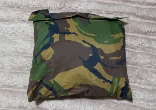 Poncho con estampado de camuflaje DPM del ejército holandés. Poncho de gran calidad en polyamida impermeabilizado, incorpora cordón con tanka para la capucha y otro cordón ajustable en la cintura (con los cordones se puede fijar perfectamente como tienda individual).Se guarda en un bolsillo que incorpora el propio poncho .Buen estado. - Diseño de camuflaje DPM. - Tejido resistente.