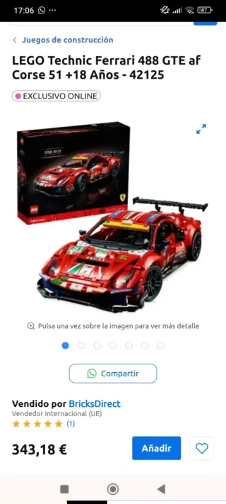 Set de construcción LEGO Technic Ferrari 488 GTE AF Corse. - Modelo detallado del coche de carreras. - Diseñado para mayores de 18 años. No tiene la caja .Pero está todo nuevo , las bolsas sin abrir . Precio algo negociable