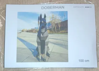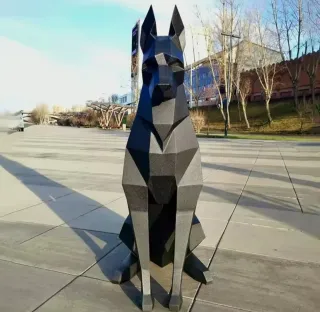 Figura decorativa de un Doberman con diseño geométrico 3D. - Color: Negro - Material: papel carton - Estilo: Moderno y geométrico