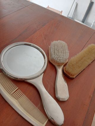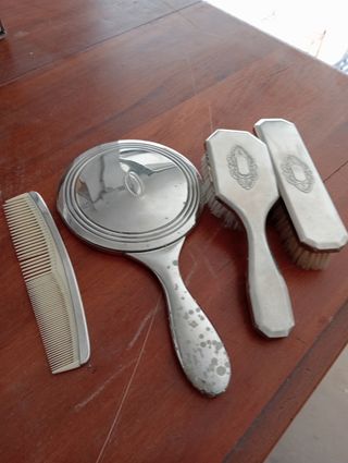 Juego de peines y espejo antiguos