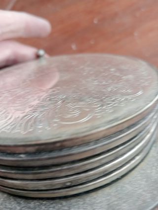 5 posavasos metalicos y fieltro con soporte. Hay que limpiarlos