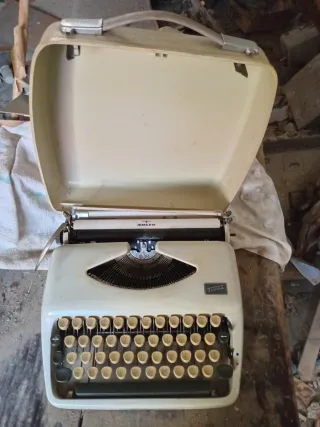 Máquina de escribir portátil de la marca Adler, modelo Tippa. Un clásico para coleccionistas o amantes de lo retro. Le falta una pieza del carro - Color blanco marfil. - Incluye su maletín de transporte.