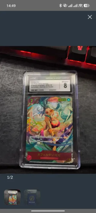 Carta de Sanji de One Piece, certificada por CGC con una puntuación Gem Mint 10. Edición especial del Bandai Games Fest 2023-24. - Personaje: Sanji - Serie: One Piece (2024) - Sello: CGC Gem Mint 10 - Evento: Bandai Games Fest 23-24 - Código: OP03-102