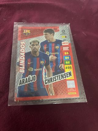 Tarjeta de colección de fútbol barca Adrenalyn XL. Se hacen lotes - Jugadores: Araújo y Christensen. - Edición: Blindados. - Temporada: 2022-23
