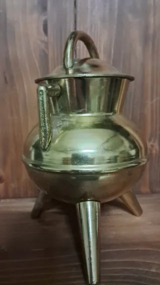 Bonito pote decorativo de estilo gallego, fabricado en bronce. Su diseño único lo hace ideal para añadir un toque especial a cualquier rincón. -NEDIDAS 16 cm alto x 10 cm - Material: Bronce - Diseño: Estilo gallego - Acabado: Brillante
