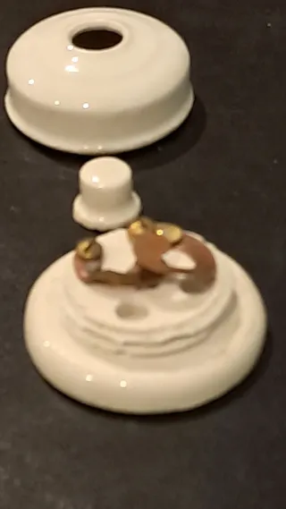 Timbre antiguo de cerámica con un diseño clásico. - Material: Cerámica. - Color: Blanco roto.