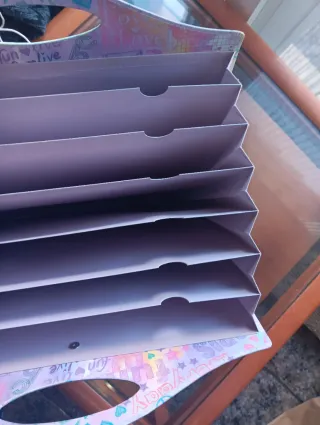 Archivador con diseño de TOP MODEL, ideal para organizar tus pertenencias. - Diseño con ilustración de chica. - Decorado con motivos de paz, estrellas y corazones. -La goma esta desgastada pero se puede cambiar o cerrarlo con un lazo