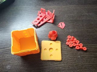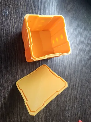 Caja de seguridad fabricada con impresión 3D. Diseñada para proteger tus objetos. - Color naranja y amarillo. - Piezas de ensamblaje incluidas.