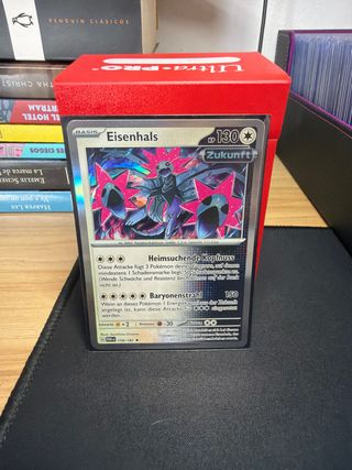 Carta Pokémon de Eisenhals, edición Zukunft. - Número de carta: 158/182. - Ataque principal: Heimsuchende Kopfnuss. - Ataque secundario: Baryonenstrahl.
