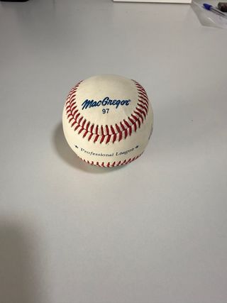 Pelota de béisbol MacGregor Professional League. - Modelo: 97 - Costuras rojas. - Diseño clásico de béisbol. No sé por quién está firmada