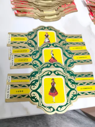 Lote de vitolas antiguas de diferentes marcas y diseños. Son piezas de colección para amantes del mundo del tabaco. - Variedad de vitolas. - Diseños clásicos y coloridos. - Ideal para coleccionistas.