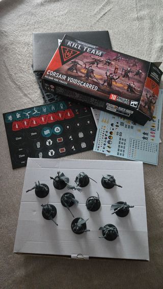 Caja de Kill Team de Warhammer 40,000,Corsarios Voidscarred. - Incluye 10 miniaturas de Citadel. - Contiene hojas de calcomanías y marcadores. MONTADOS!