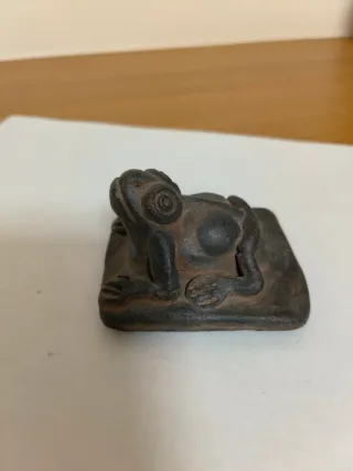 Este sello artesanal tiene la forma de una rana. - Material: Terracota. - Diseño: Rana. - Base cuadrada.