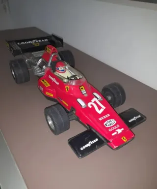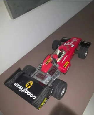 Réplica de coche de Fórmula 1 de Ferrari con patrocinio de Goodyear. Un modelo llamativo para coleccionistas. - Diseño clásico de F1. - Detalles de patrocinadores. - Color rojo Ferrari.