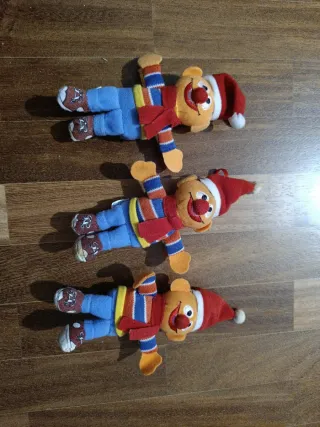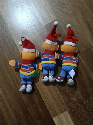 Lote de tres muñecos pequeños de Barrio Sésamo, todos nuevos. - Muñecos con gorro de Papá Noel. - Ropa de invierno con bufanda y jersey a rayas. - Botas marrones con diseño.